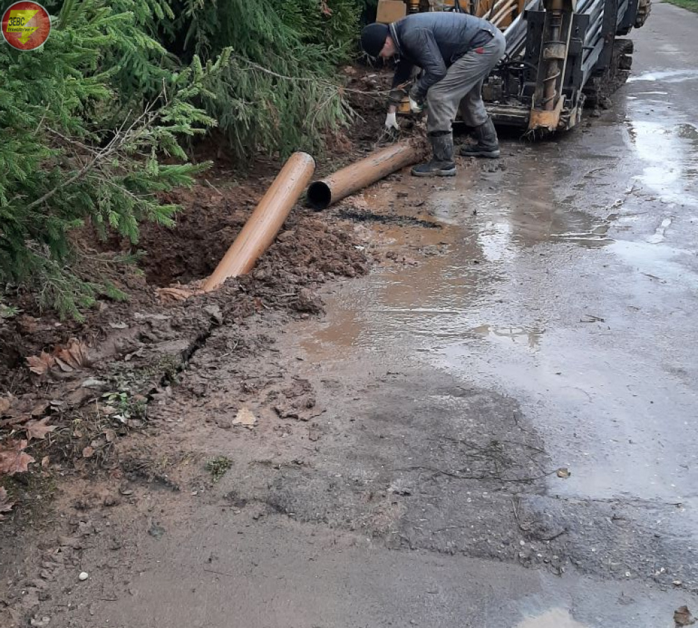Бестраншейная прокладка трубы D=110 мм протяженностью 300 м, методом ГНБ. Московская область, Одинцовский городской округ, д. Подушкино.